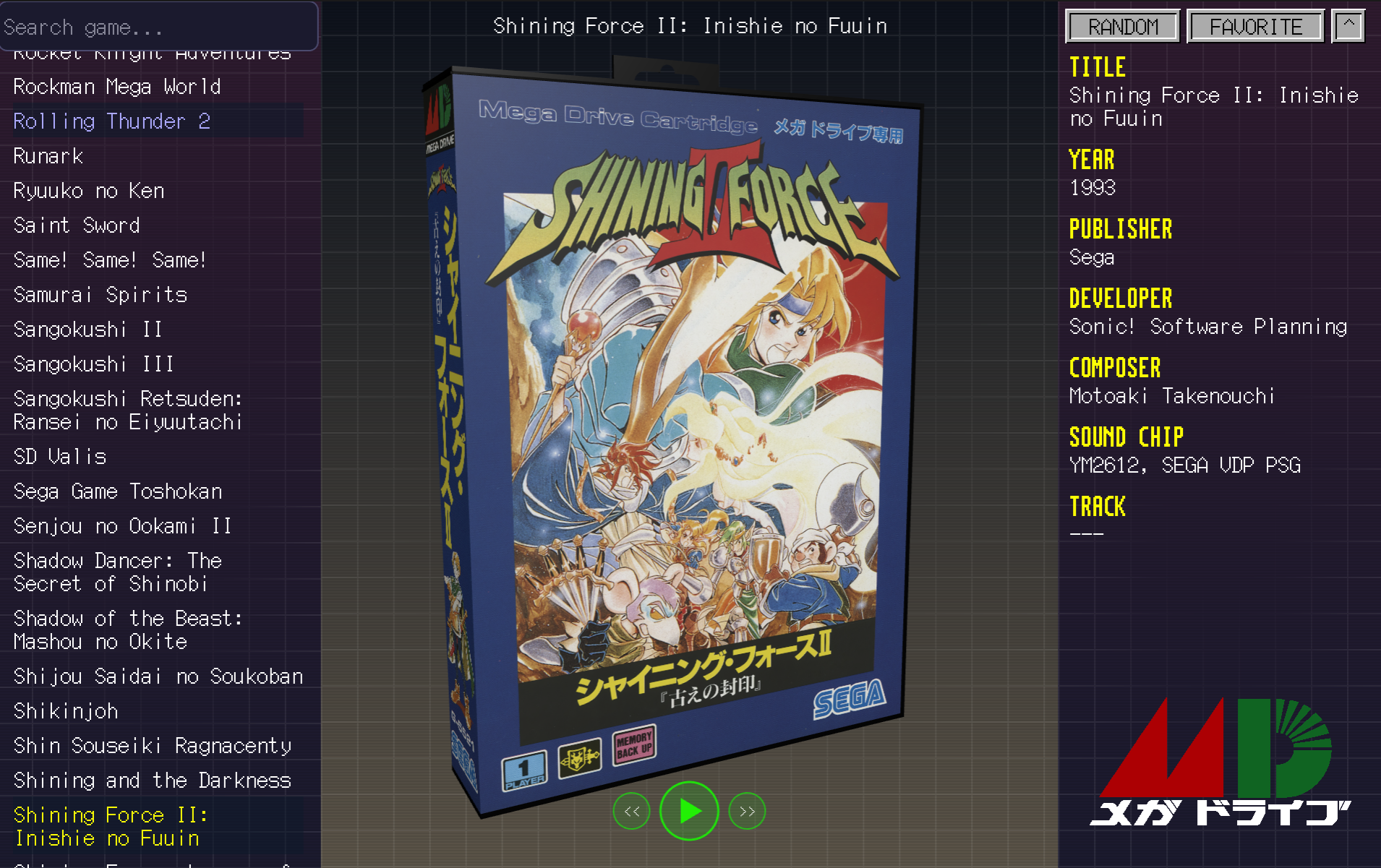 Interactive gallery of Sega Mega Drive game covers with authentic VGM soundtrack playback (Beta v0.1.0)